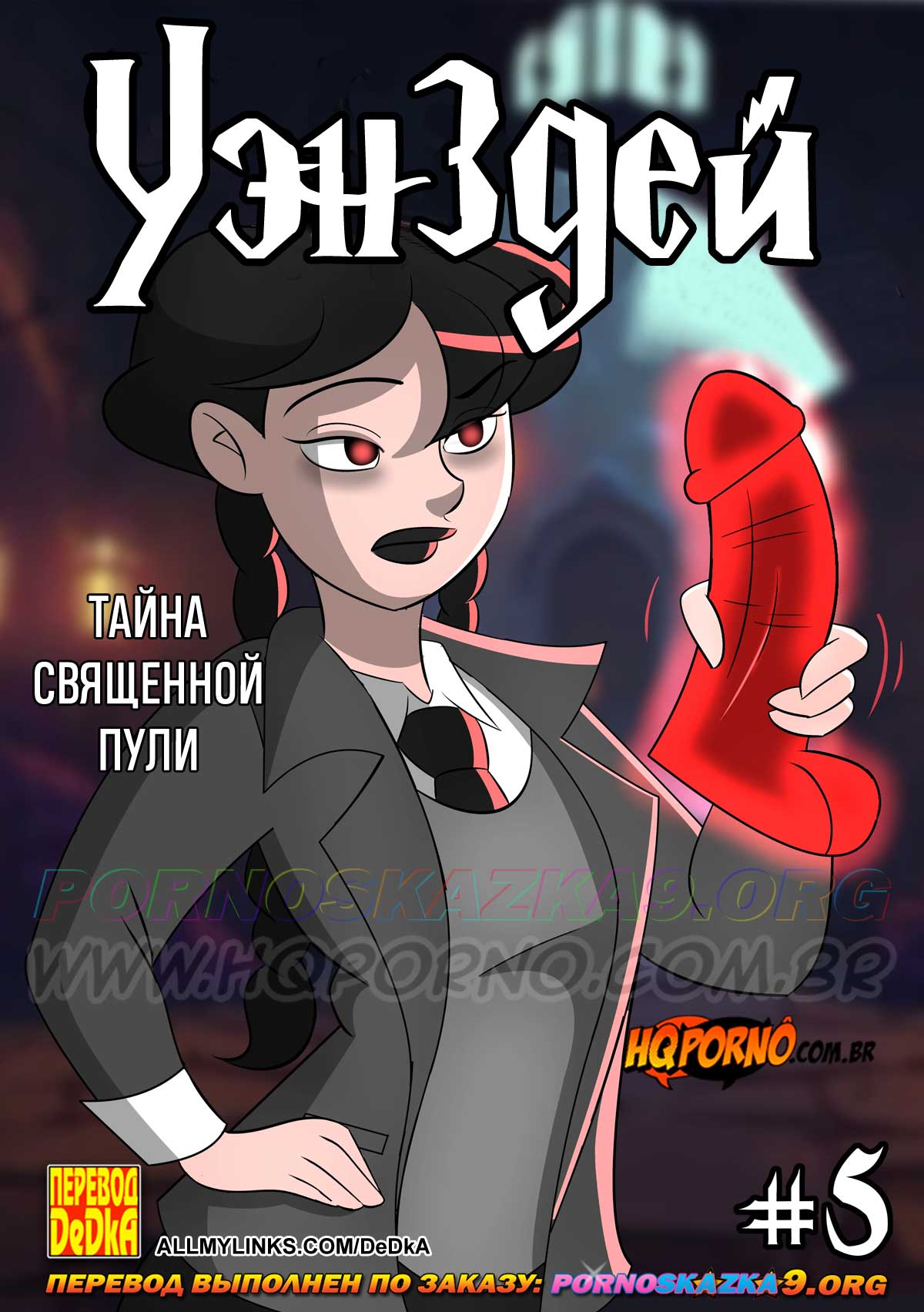 Читать далее 03 Дек 2025 16286 0Порно комикс «Уэнздей. Часть 5. Тайна священной пули.»